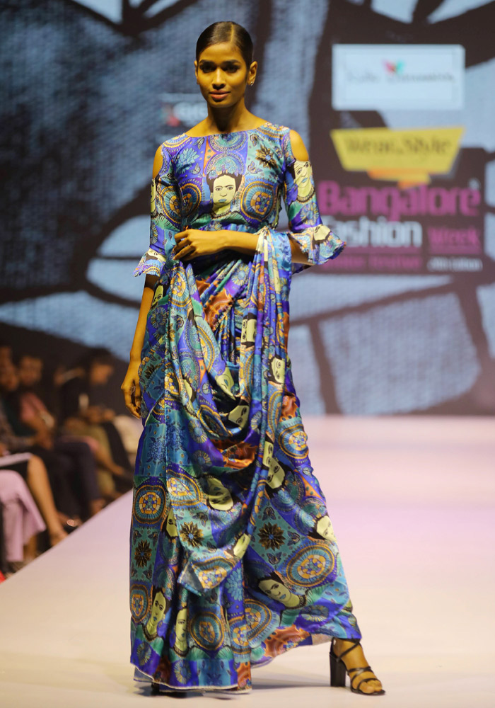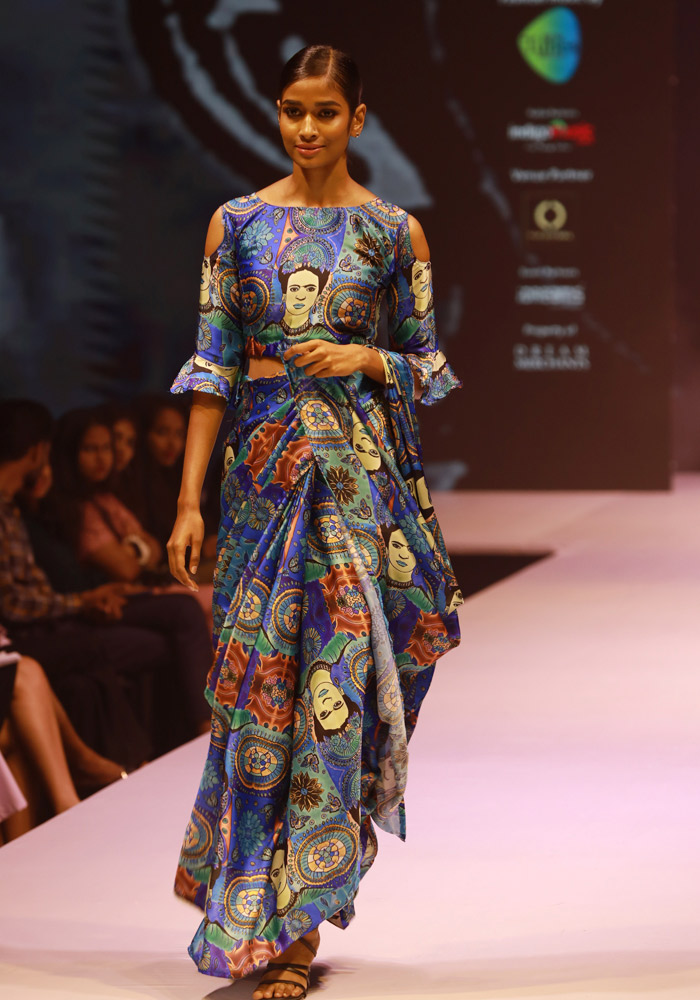 This one-of-a-kind saree is designed for the modern person who breaks barriers and defies conventions. It’s a celebration of individuality, creativity, and confidence. The Frida Kahlo print adds a touch of artistic flair, making this saree a true showstopper that’s sure to turn heads at any occasion. Whether you’re attending a special event, a wedding, or simply want to make a statement at a casual gathering, the Blue Frida saree is the perfect choice. Its elegant and charming design is sure to make you feel like a queen, and its unique print will spark conversations and inspire admiration.